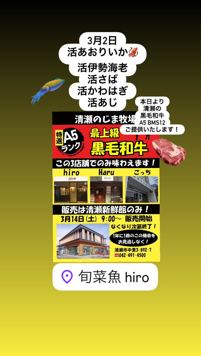 – [x] #山崎#清瀬#MAGURO旬菜魚1-13-7