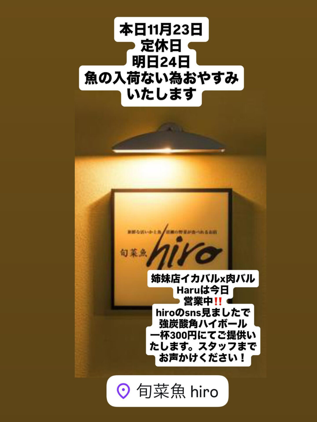 東京都清瀬市の清瀬駅から徒歩5分でお越し頂ける旬菜魚 hiro(ひろ)は、産地直送の新鮮素材にこだわり、国産の安心安全な食材をご提供する居酒屋です。