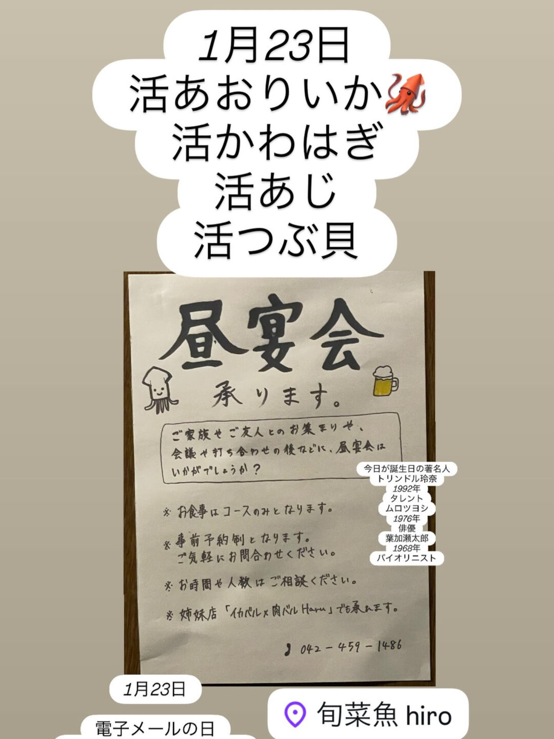 東京都清瀬市の清瀬駅から徒歩5分でお越し頂ける旬菜魚 hiro(ひろ)は、産地直送の新鮮素材にこだわり、国産の安心安全な食材をご提供する居酒屋です。